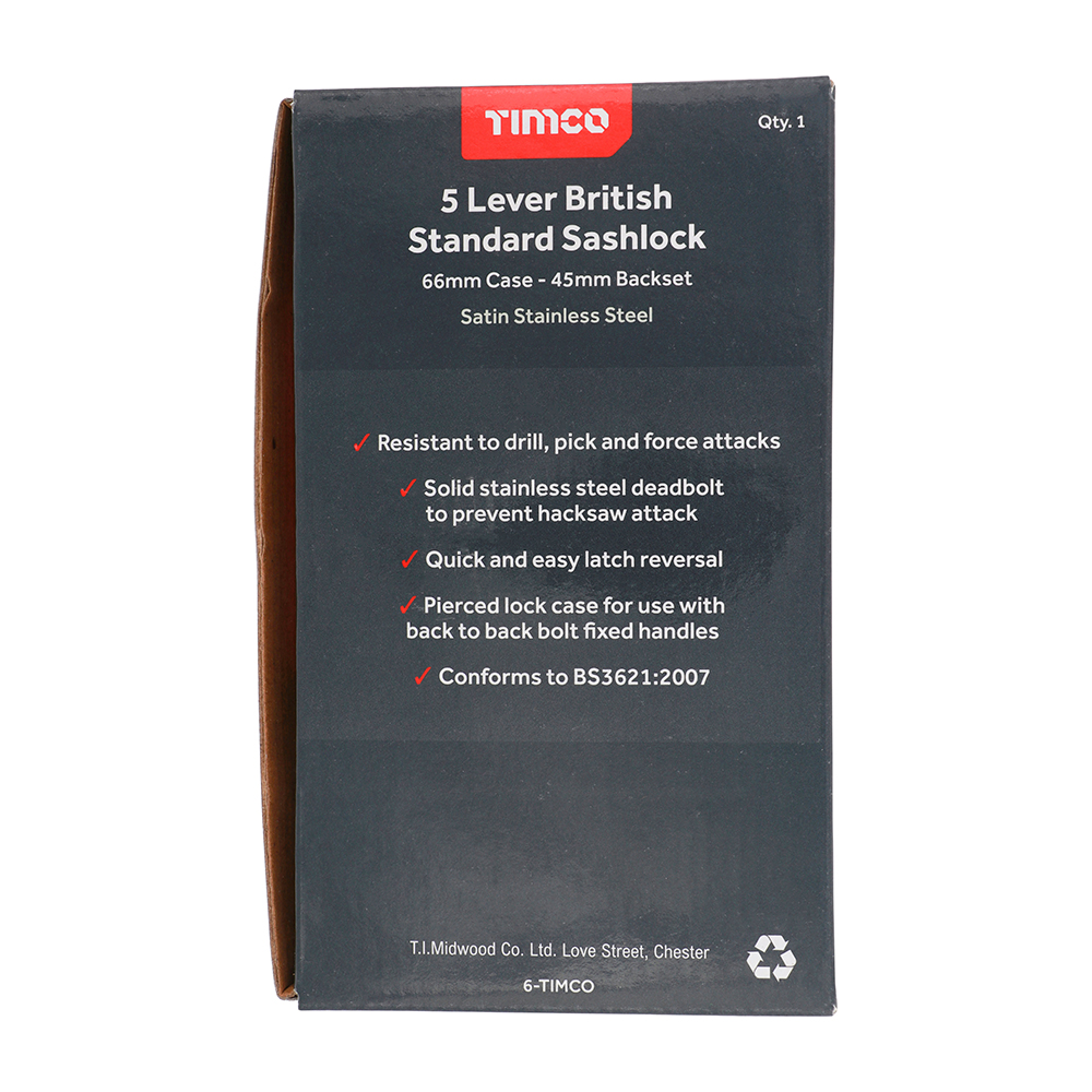 A high security mortice lock for use in interior and exterior doors in commercial and domestic environments. The lock has been rigorously tested to BS 3621:2007 which is a common requirement of building and content insurance policies. The heavy duty spring mechanism makes this lock ideal for sprung and unsprung door handles. 1 Each