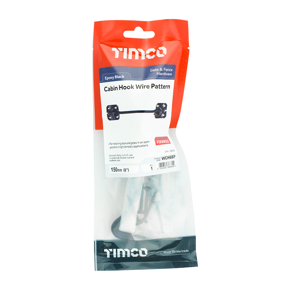Timco 6″ Cabin Hook – Wire Pattern – Black – WCH6BP