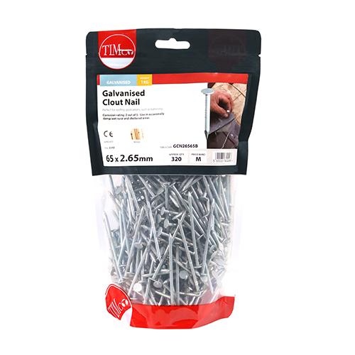 Timco – GCN26565B – Clout Nail – Galvanised – 65 x 2.65 – 1 KG in TIMbag