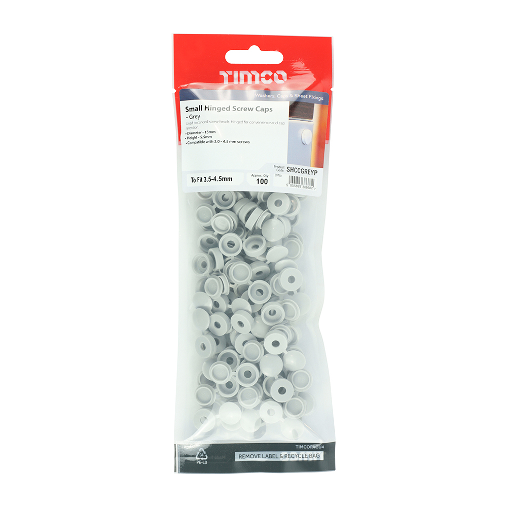 Timco Pack of 100 x Small Hinged Screw Cap -L Grey – To fit 3.0 to 4.5 Screw – SHCCGREYP
