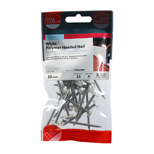 Timco – PN50WP – Polymer Headed Nail – White – 50mm – 25 pieces in TIMpac