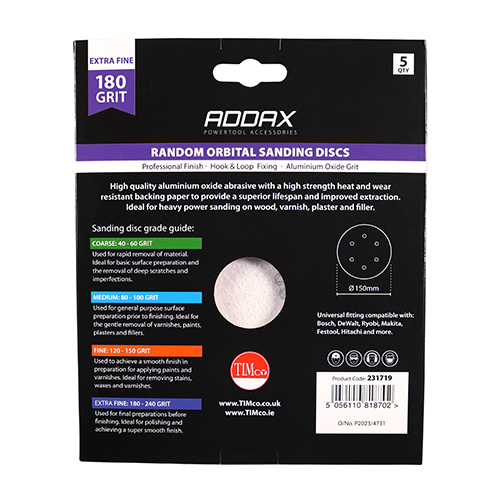 High quality aluminium oxide abrasive with a high strength heat and wear resistant back paper to provide a superior lifespan and improved extraction. Ideal for heavy power sanding on wood, paint, varnish, plaster and filler. 5 Pieces
