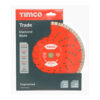 Pack Type Box Pack Qty 1 Approval oSa Approved Bore (mm) 22.2 Brand TIMCO Colour Blue Disc Ø (inch) 9 Disc Ø (mm) 230 Feature 1 Fast cutting Feature 2 Heavy duty body Feature 3 Self cooling Material Hardened Carbon Steel with Diamond Segment Safety Standard BS EN 13236 Segment H (mm) 10 Substrates Concrete, Brick, Slate, Slabs, Sandstone, Clay Tiles, Limestone Weld Type Laser